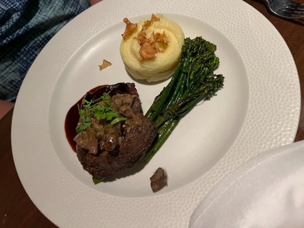 A few people around the table ordered the Filet (with Truffle Pomme Purée, Broccolini, Sherry Champignon Ragoût, and a Red Wine Bordelaise).