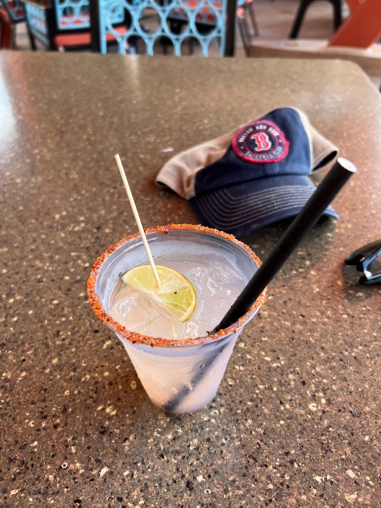 Post-goodbye, we spent some more time over at the Oasis pool with the Falzones. Which meant I spent some more time with my Rose Gold Margarita, this time with a Tajin rim.