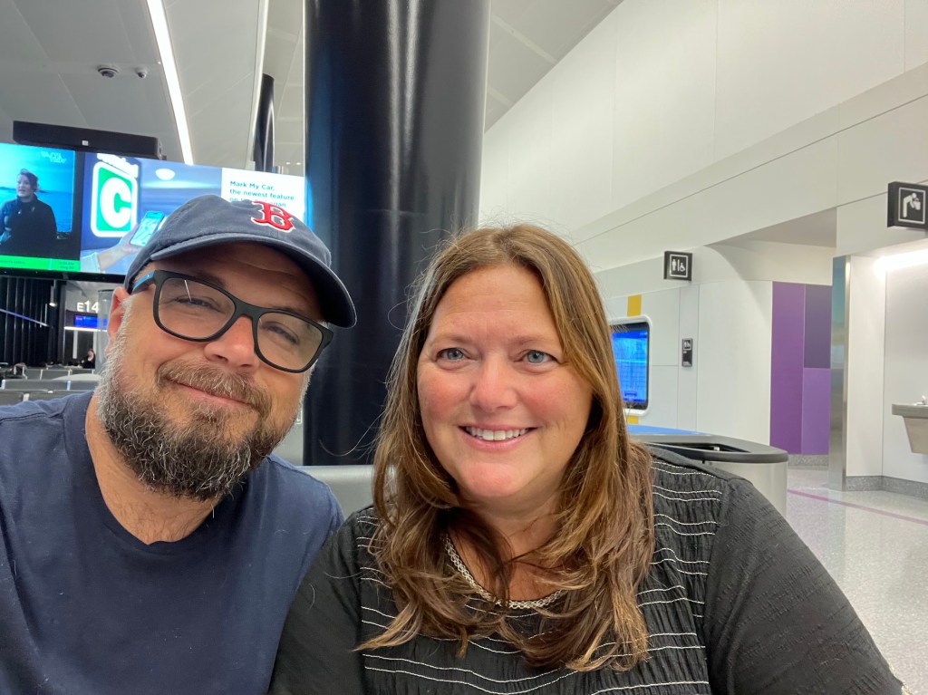 It was a pretty exciting feeling at that moment. Sitting there watching the day begin, waiting to board our plane felt like the start of a pretty grand adventure. And I mean that not only in terms of the 12-day land and sea situation we were embarking on. I mean this was the first trip in a line of hopefully many to follow as we now have so much time to focus on just us. If this was empty-nesting, it wasn’t looking to be too bad.