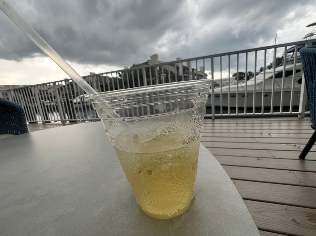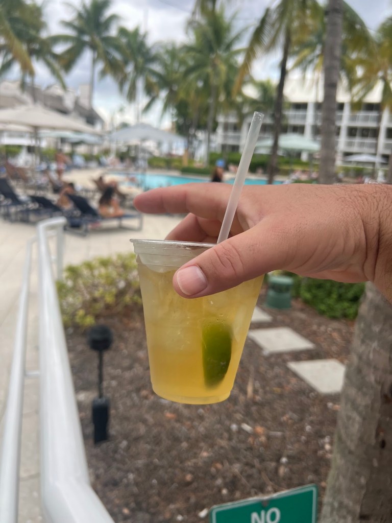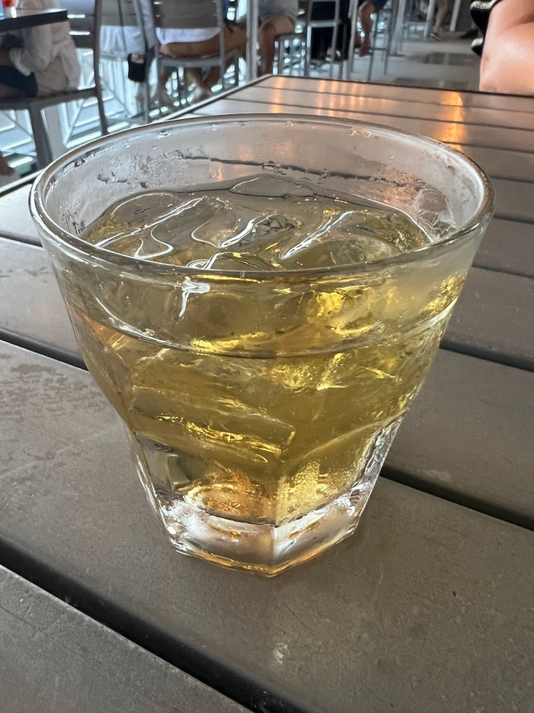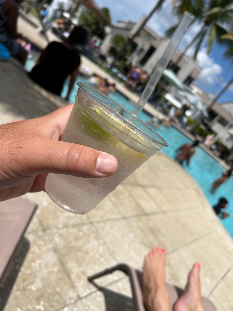 At this point, we were hella-hungry. So I put it an order for us at the little pool bar. I got myself a Tito’s and Soda.