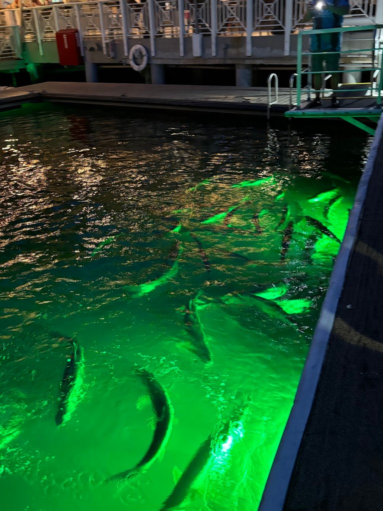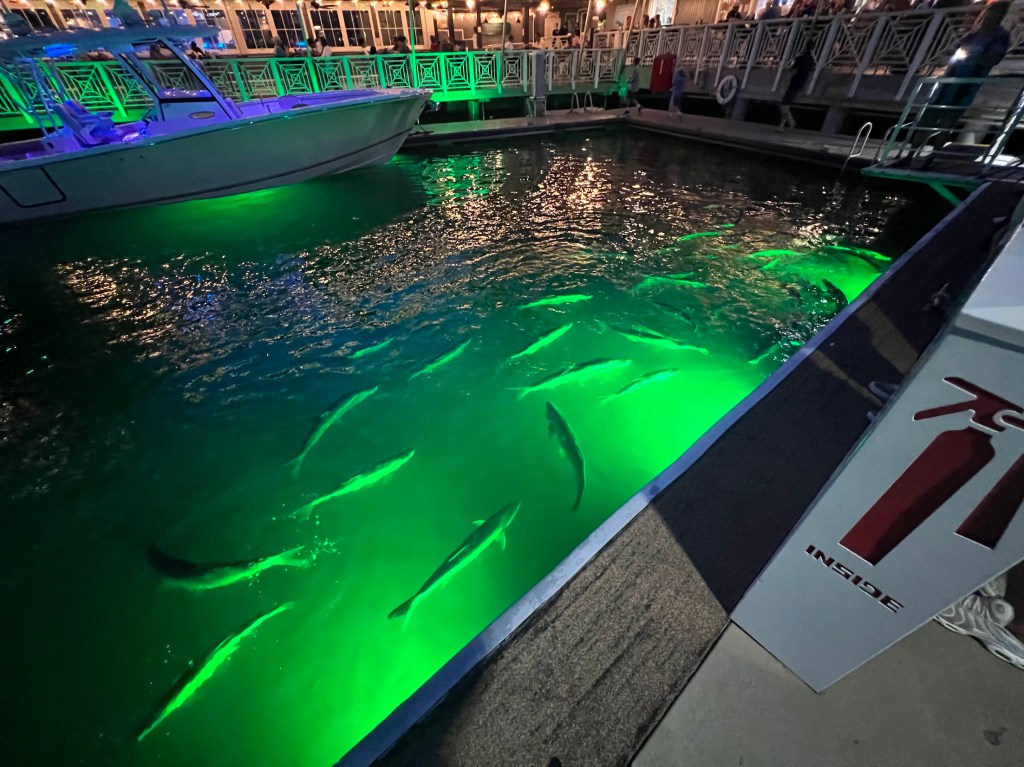 After we finished up with dinner, we took a walk on the dock to get a better look at the tarpons. And I mean, did we ever.