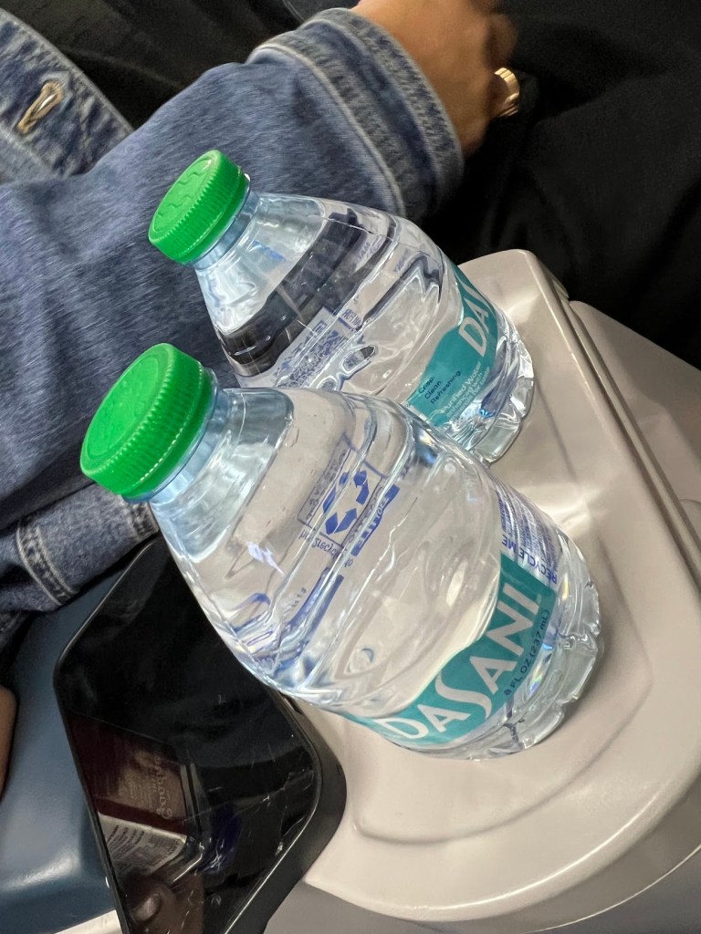 …we sat down to find some water waiting for us at our big comfy seats.