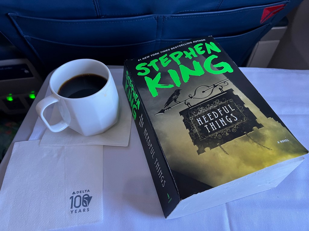 So as you can see in that picture above, I moved onto reading my latest Stephen King book – Needful Things. Also so good. And yeah, violent too.