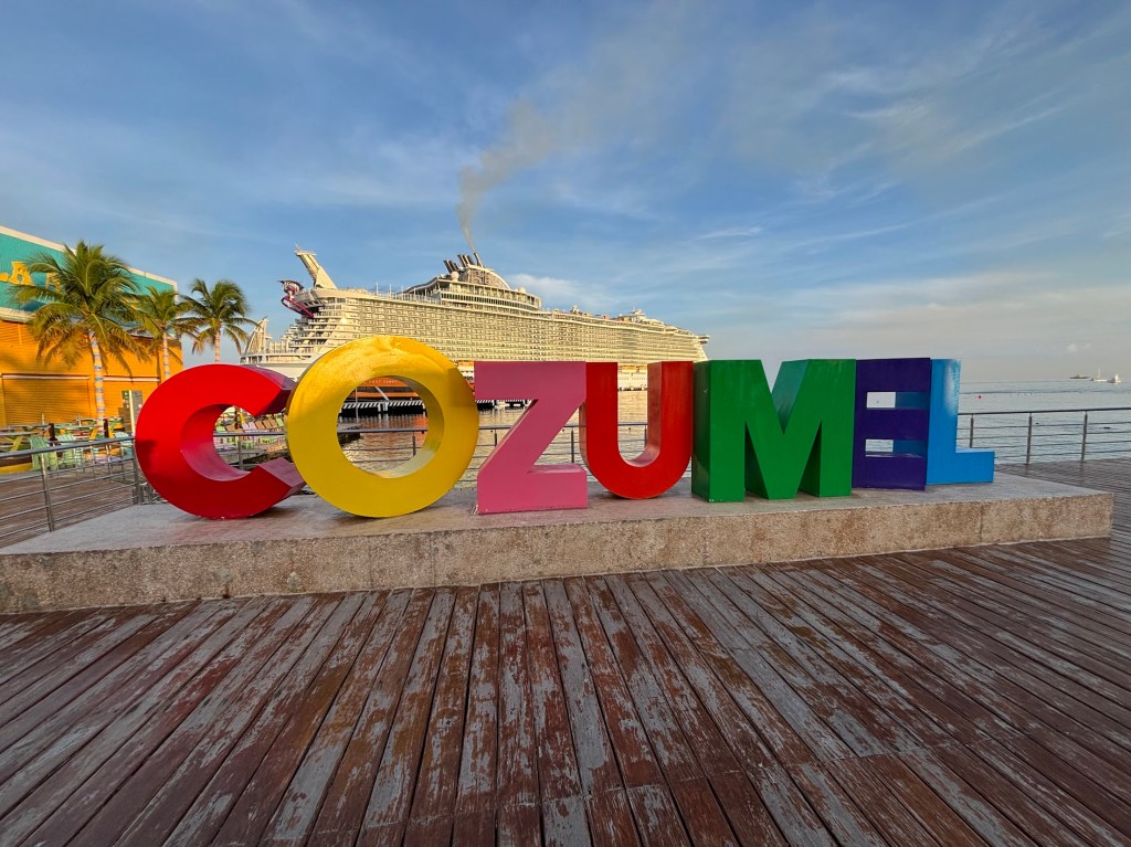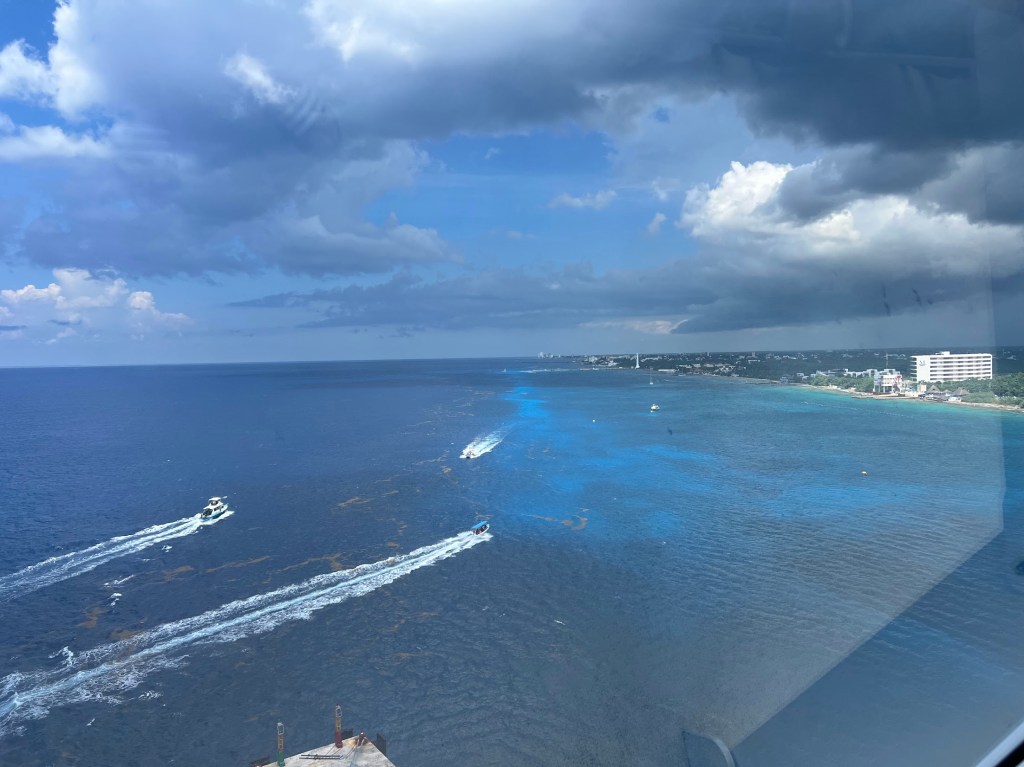 We brought our drinks out to the sun deck to enjoy while we looked out over Cozumel.