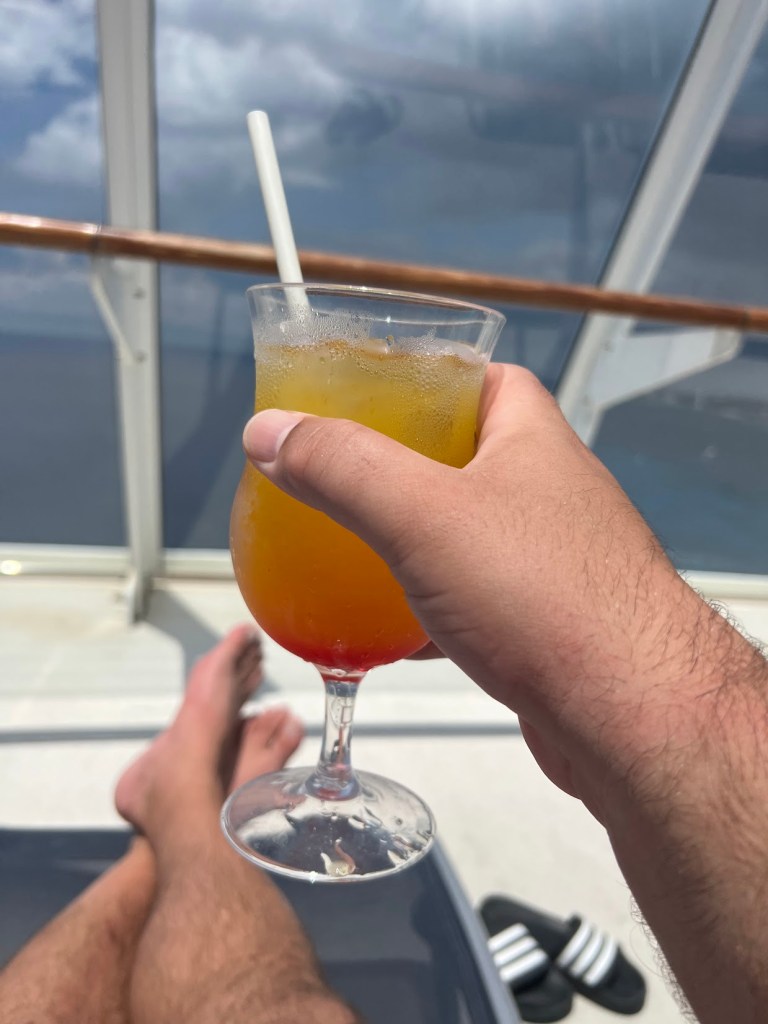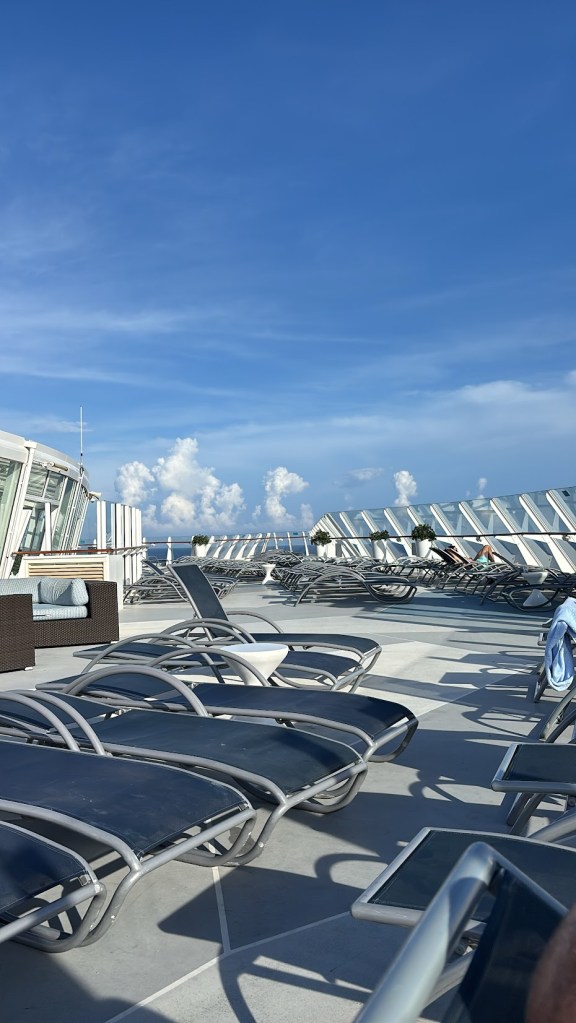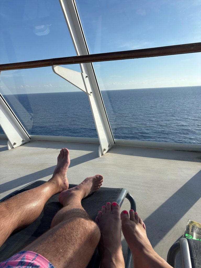 I’d say we spent about an hour and a half or so out there. And place was relaxing as h-e-l-l-double-hockey-sticks. I even dozed off for a few minutes. And like, even when we were going over our favorite moments of the trip later, this hour stood out for both of us. Just the two of us, looking out over the ocean, doing nothing but being together. There is so much to like about a cruise, but moments like these are for sure high on the list.