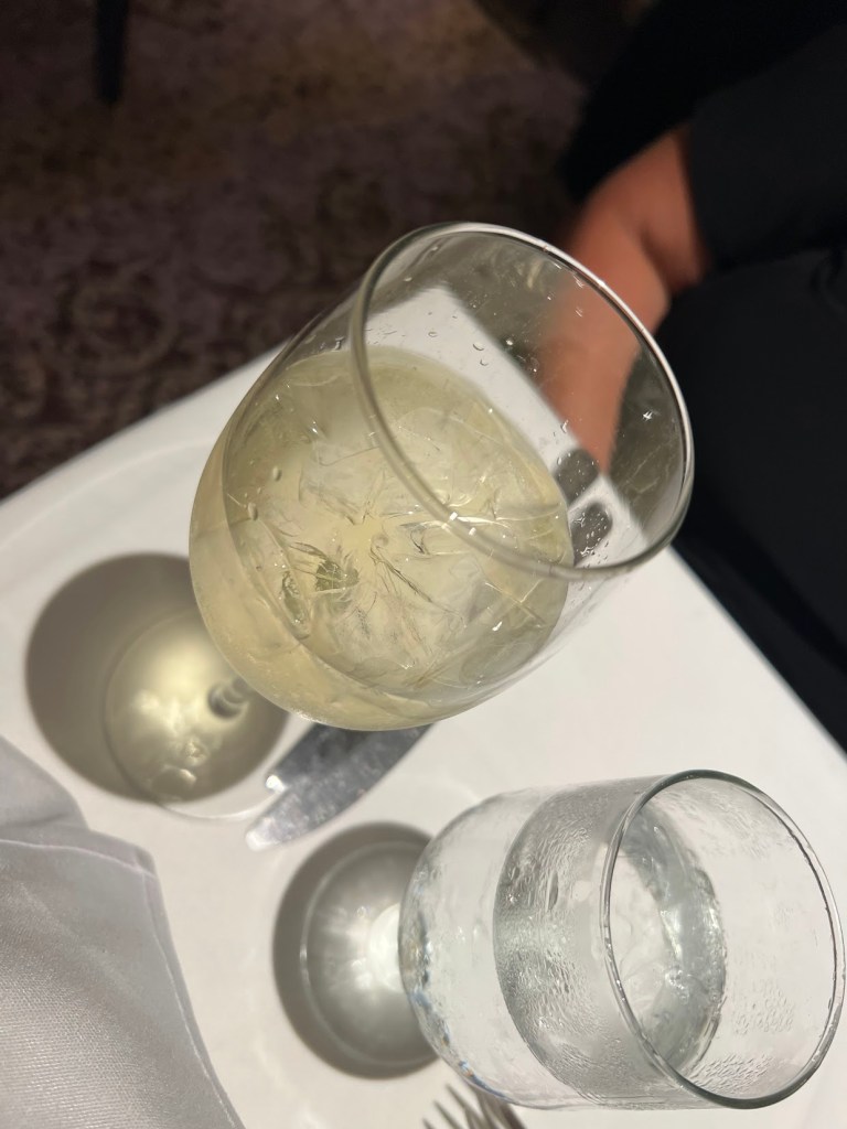 Tonight’s main dining menu was “A Taste of France”, which actually is laid out pretty well in this visual guide on Facebook. Though we didn’t have no pictures on our menu. Menus are just way more helpful with pictures. Too bad all restaurants don’t feel the same.