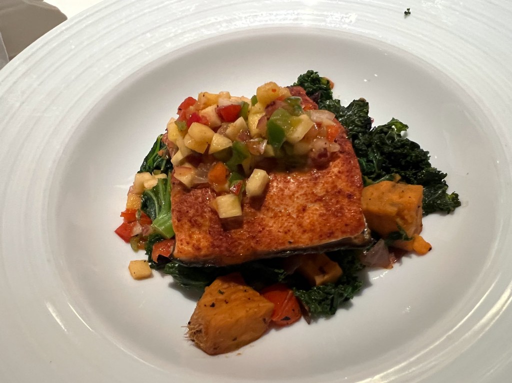 I went with the Chili-Lime Crusted Salmon.