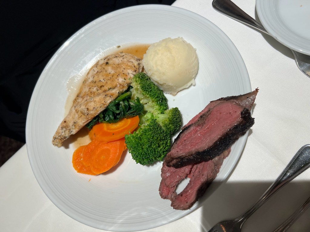 Another surprisingly stellar dish. We had heard such mixed things about the main dining room on the Oasis of the Seas, but man. They kind of just kept dropping bangers. This meat was so tender and while the meat itself had some nice flavor, the peppercorn sauce definitely kicked it up. Mashed potatoes were also on point.