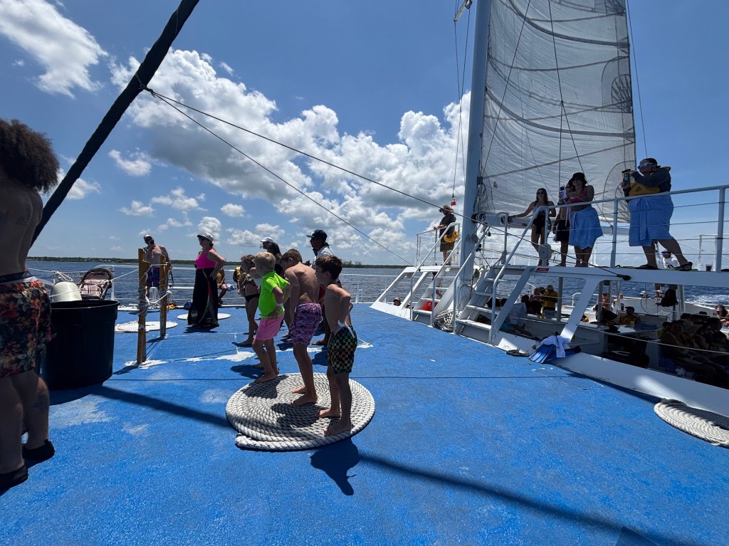 On the way back to the pier, the crew turned the music up, kept the drinks flowing, and got some line dancing going.