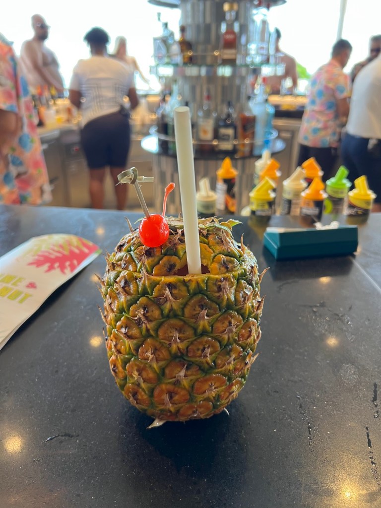 So of course I got one. It was served in a pineapple. Thing was health food.