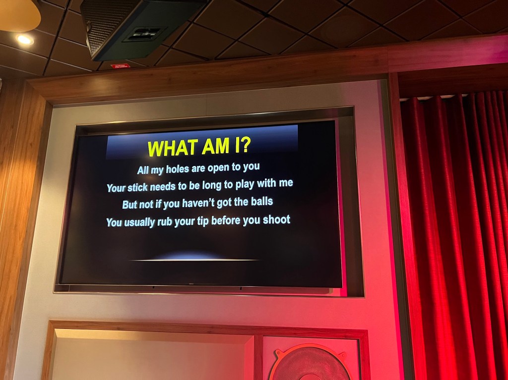 I think I may have also sang some Elton John tonight. But who knows. I mean, I sang A LOT of karaoke on this cruise. Much to Nickie’s…